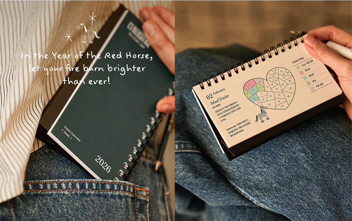 열정과 에너지의 상징, 붉은 말의 해 2026년. 새롭게 주어진 365일이라는 숫자들과 함께 여러분이 꿈꾸는 삶을 향한 여정을 떠나보세요. 커버서울 해빛 캘린더 키트가 긴 여정의 끝까지 함께 할게요.