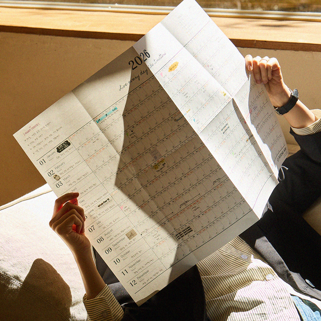 2026년을 한눈에 볼 수 있는 큰 사이즈 (A2) 캘린더입니다. 월별로 이루고 싶은 목표나 습관을 적어 더욱 계획적으로 1년을 구상할 수 있고 매일 습관을 체크할 수 있어요.