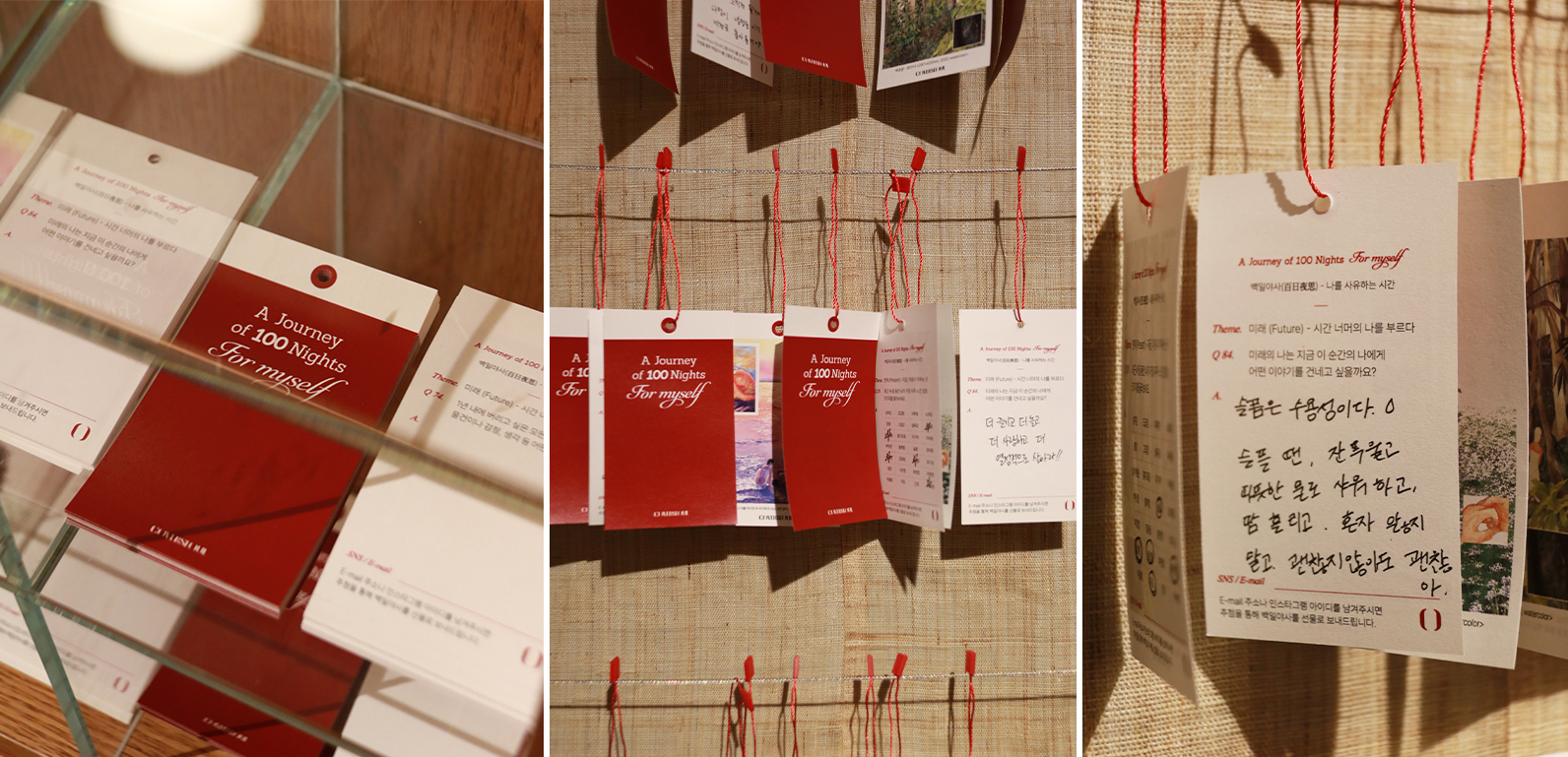 커버서울 오프라인 스토어 습작실에서 준비된 백일야사 미니 페이퍼에 질문에 대한 답변을 적어주세요. 답변과 함께 E-mail 나 인스타그램 아이디를 남겨주시면 추첨을 통해 백일야사를 선물로 보내드립니다.
