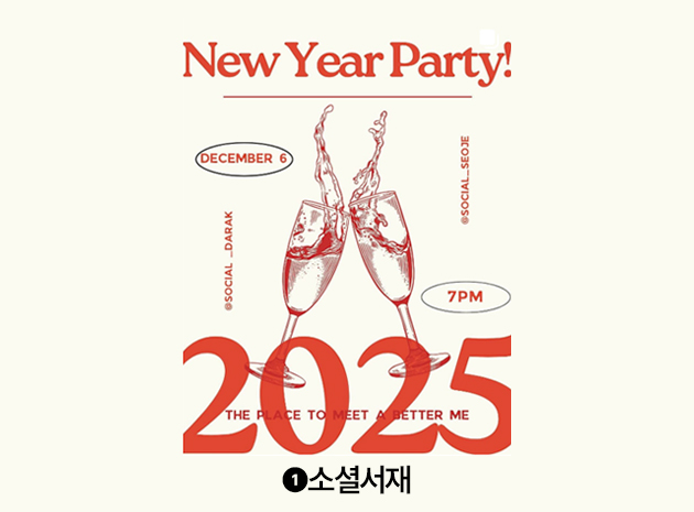 ❶ 소셜서재 | 사당역 도보 5분 일시 : 12월 6일 오후 7시부터 : 공유서재를 운영하는 소셜서재에서 진행하는 연말 파티를 소개할게요. 올해의 나를 도닥이고 새해의 나를 환영하는 파티로, 낯선 이들에게 나를 말하며 내가 몰랐던 나를 발견하고, 나를 다시 한번 돌아보는 시간을 가질 수 있어요. 혹시 몰라요, 내 마음을 반짝이게 만들 새로운 인연이 기다리고 있을지도.😉