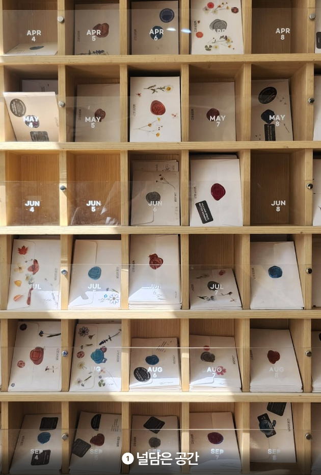 : 해방촌과 경복궁에 위치한 '널담은 공간' 카페 메뉴에는 '미래로 보내는 엽서'가 있어요. 연인 혹은 친구와 함께할 1년을 기약하며 서로에게 편지를 남겨보는 건 어떨까요? |