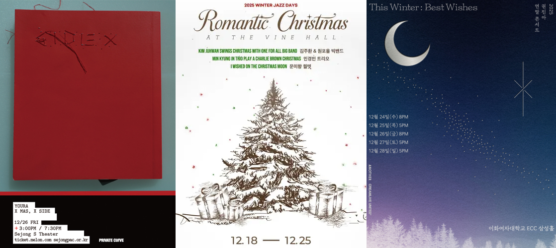 ❶ 유라 연말 재즈 콘서트 < 유라 X Mas, X SIDE> 장소 : 세종문화회관 S씨어터 일시 : 12월 25일